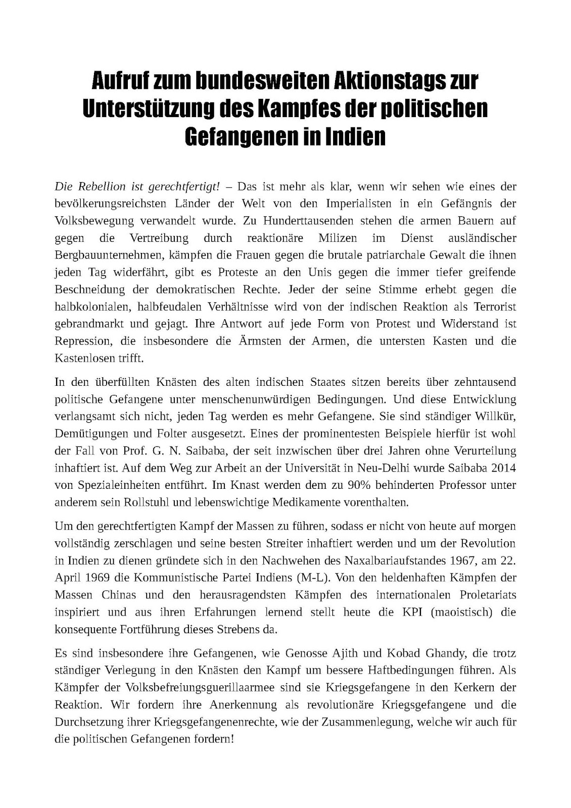 beim reaktionären Kampf gegen Revolutionäre denunziert wurde, ging